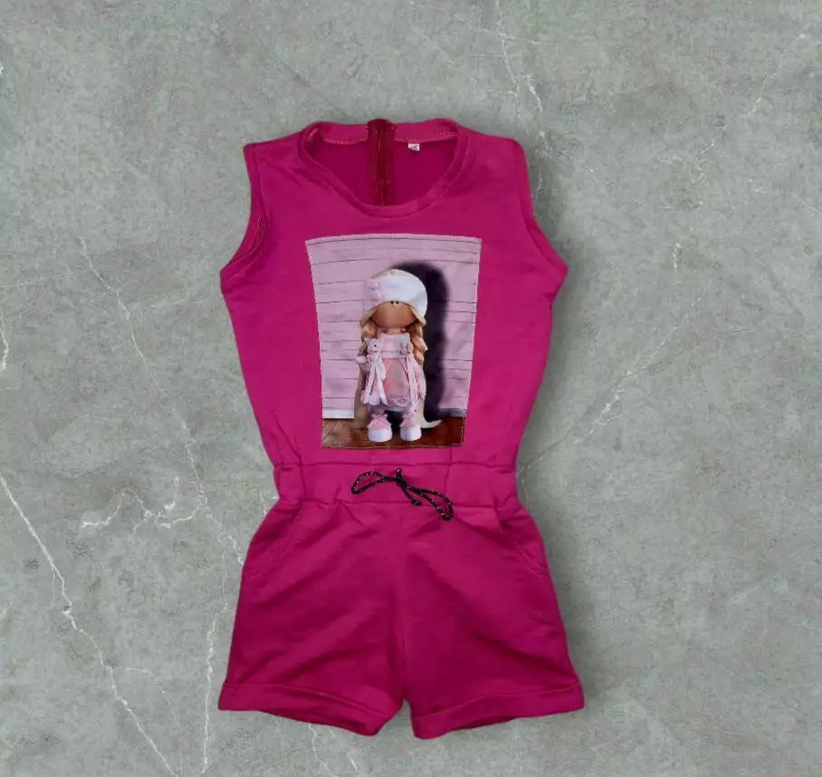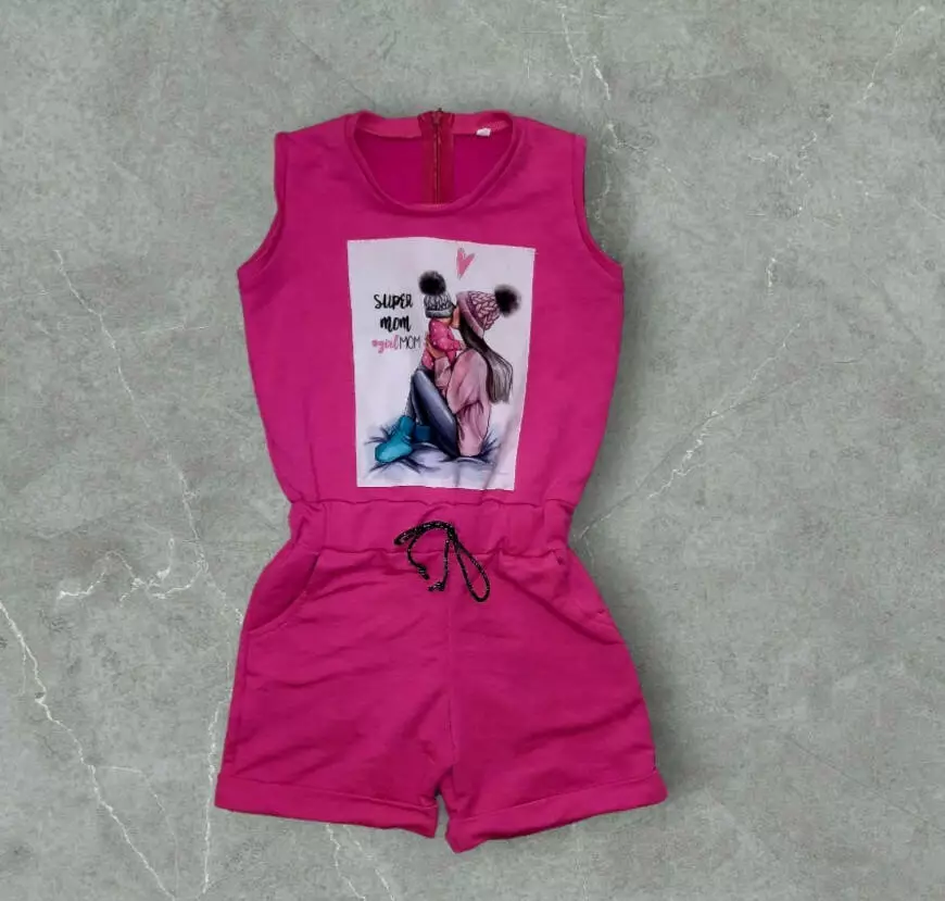 Дитячий літній комбінезон на дівчинку 8 років малиновий