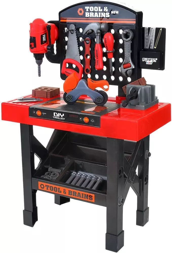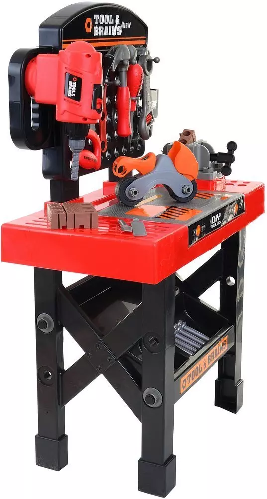 Дитячий набір "Майстерня" - це захоплююча і розвиваюча іграшка, яка допомагає дитині відчути себе справжнім майстром. Він включає різноманітні інструменти та аксесуари, що імітують справжні робочі інструменти, такі як молоток, викрутка, гайковий ключ, болти, шурупи і багато іншого.