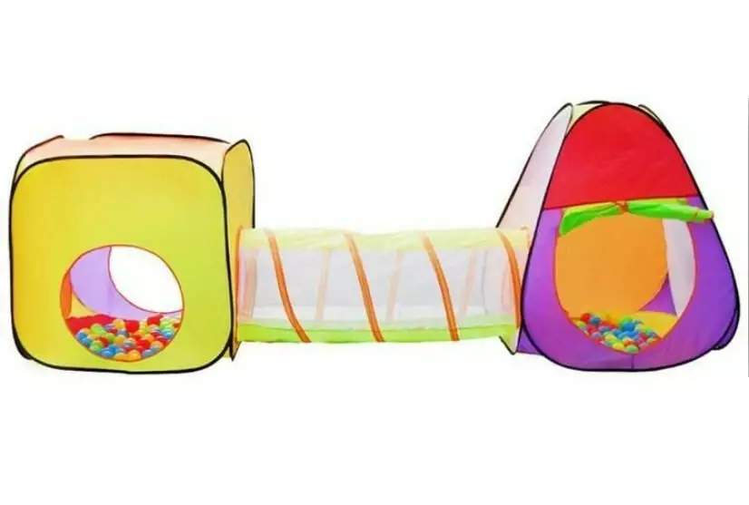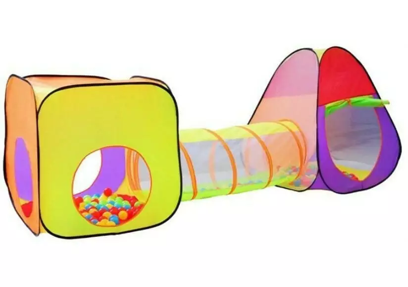 У комплект входять 2 будиночки, тунель та 200 різнокольорових