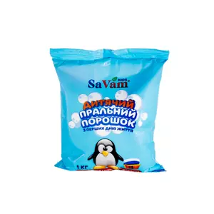 Дитячий пральний порошок SaVam Kids розроблений спеціально для делікатного та ефективного дитячого одягу,білизни та текстилю.Формула не містить агресивних компонентів,фосфатів і хлору ,що робить засіб безпечним для чутливої шкіри малюків з перших днів життя.