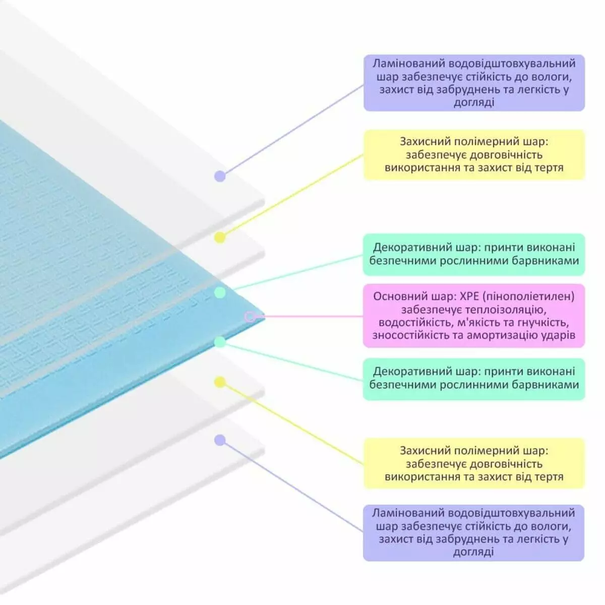 Основний матеріал килимка – спінений поліуретан (ХРЕ). Цей