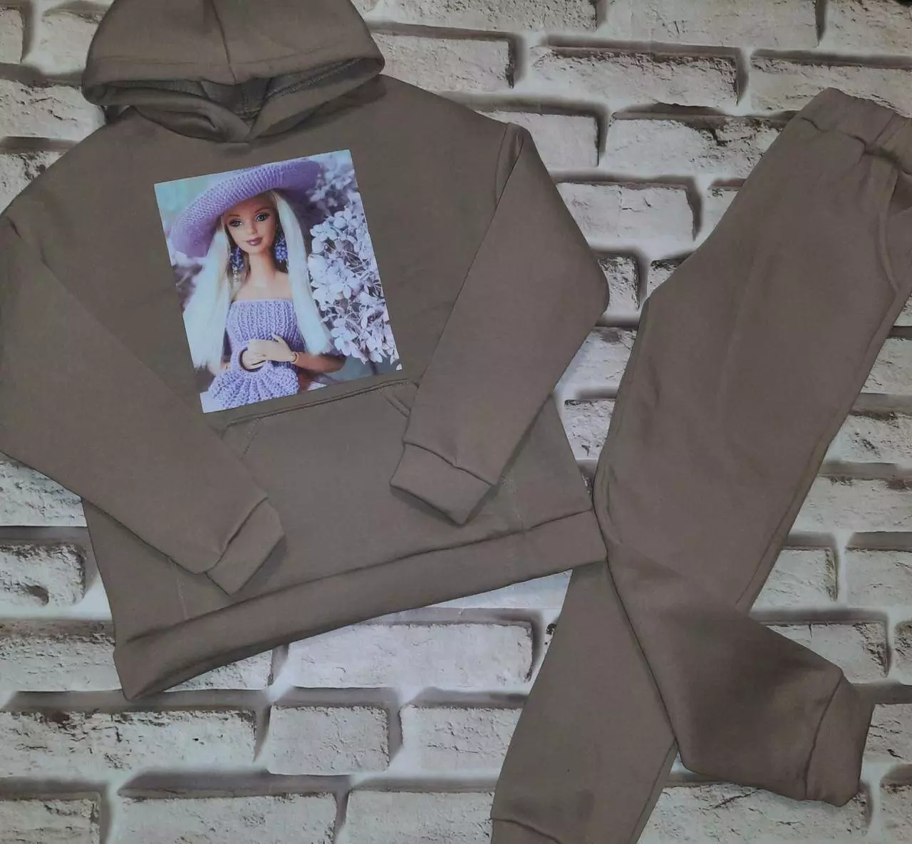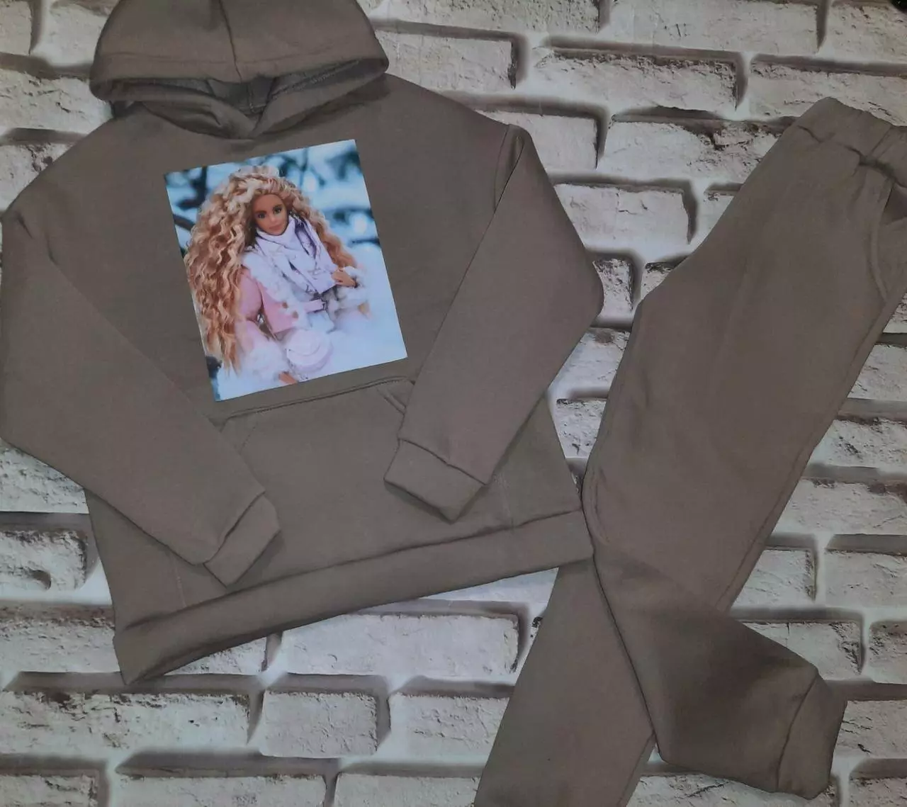 Дитячий спортивний костюм на дівчинку колір Бежевий (Плотна, тепла тканина, не кашлатиться) "Барбі"
