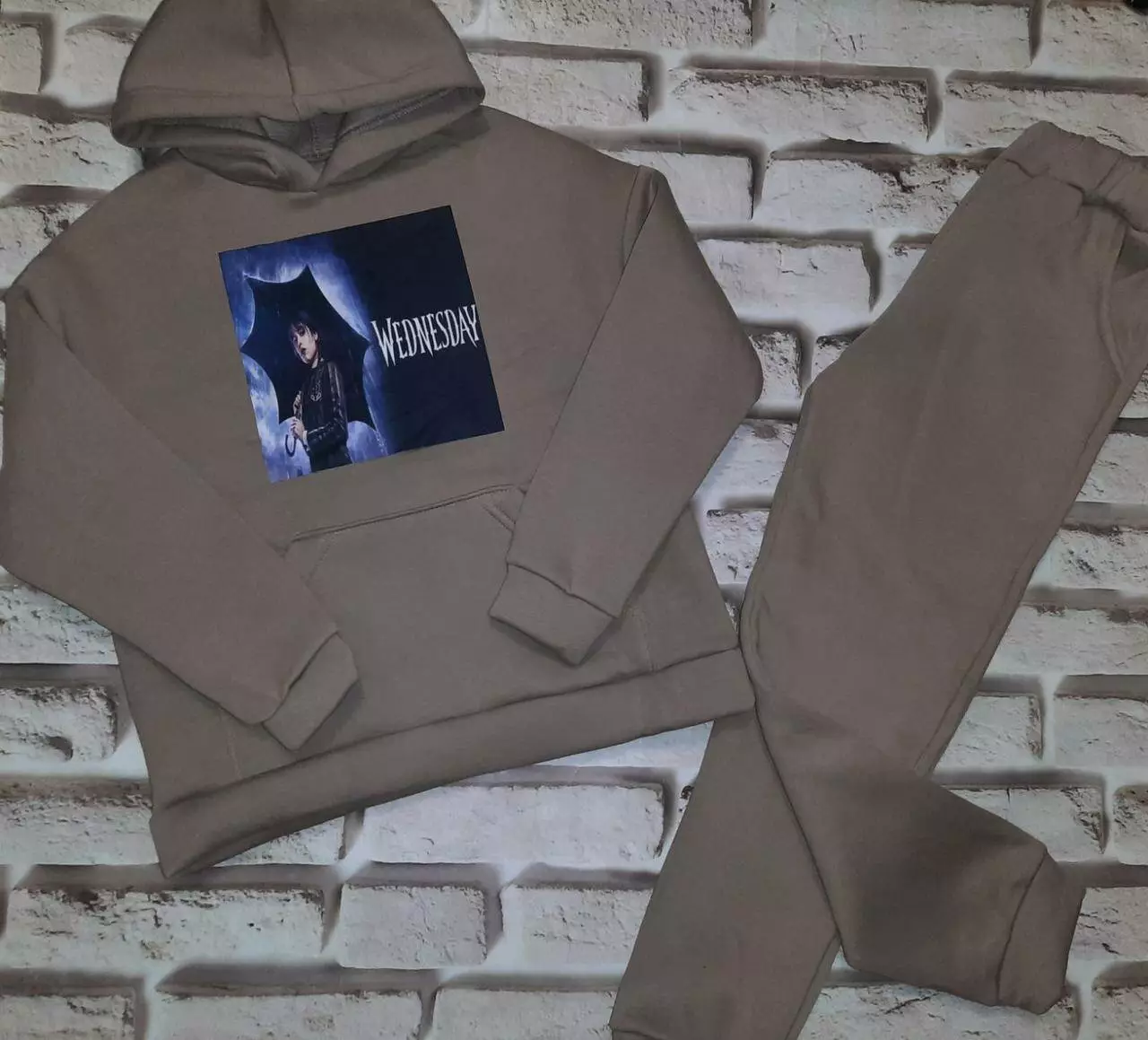 Дитячий спортивний костюм на дівчинку колір Бежевий (Плотна, тепла тканина, не кашлатиться) "Венсдей"