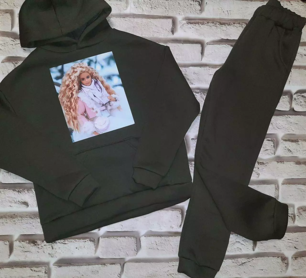 Дитячий спортивний костюм на дівчинку колір Хакі (Плотна, тепла тканина, не кошлатиться) "Барбі" Зріст 152-164 см.
