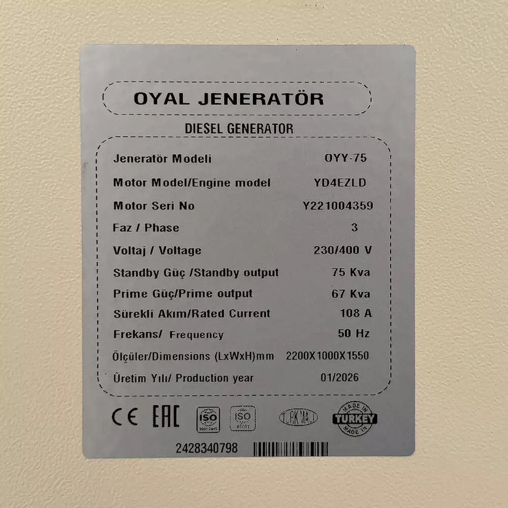 Дизельний генератор OYAL OYY-75 YANG DONG Y4EZLD 75KVA/60KW,
