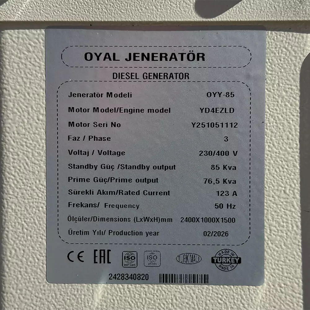 Дизельний генератор OYAL OYY-85 YANG DONG Y4EZLD 80KVA/64KW,
