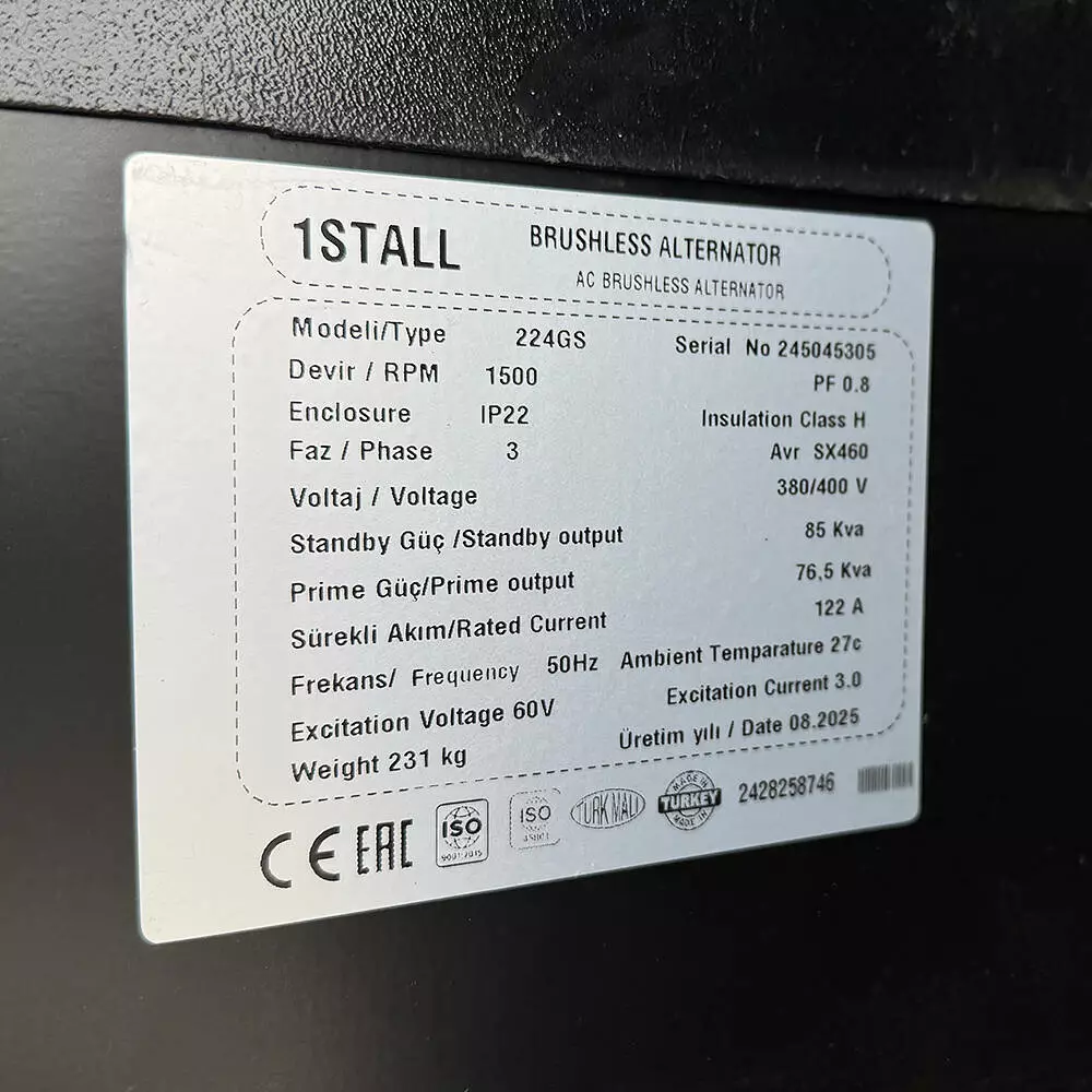 Альтернатор OYL224F, витрата 75% навантаження - 10,5 літрів/год,