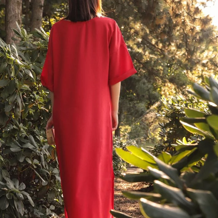 Довга сукня-футболка, прямого крою, з тканини "віскозний льон".