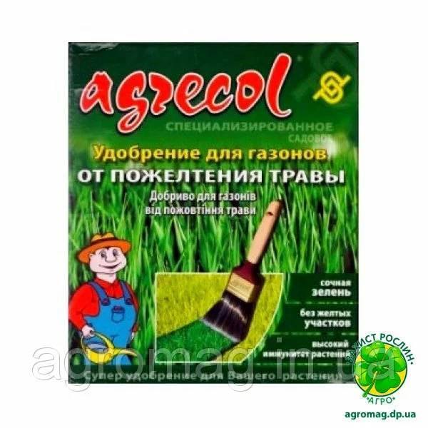 Добриво «Agrecol - швидкий килимовий ефект - Комплексне добриво з підвищеним вмістом азоту (N) 34%, призначене для газонов.Состав: Азот (N) - 34%. застосовують для інтенсивно поливних і часто скошуваних газонів, через такий інтенсивної експлуатації і видалення скошеної трави з поверхні газонів, бракує азоту, потрібного для відтворення м'якоті тканин. Це проявляється через втрату кольору трави та її підвищену порідіння. Щоб подібне запобігти, рекомендуємо використання добрива для газонів швидкий килимовий ефект із серії сипучих добрив «Agrecol».