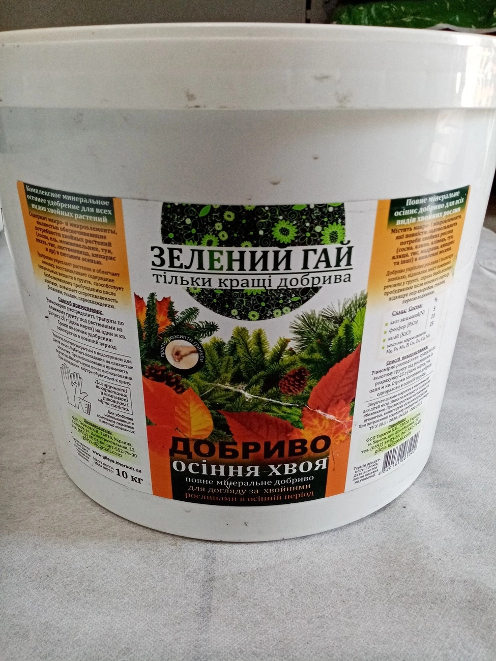 Зелений гай золота осінь 10кг - це відмінне комплексне мінеральне добриво за відгуками нашах покупців і дизайнерів працюють з різними імпортними добривами якість теж а ціна набагато дешевла.Вносят під всі види дерев (плодових, декоративних, хвойних), чагарників, газону і багаторічних квітів (в тому числі троянд) після сезону активного росту, цвітіння і плодоношення.