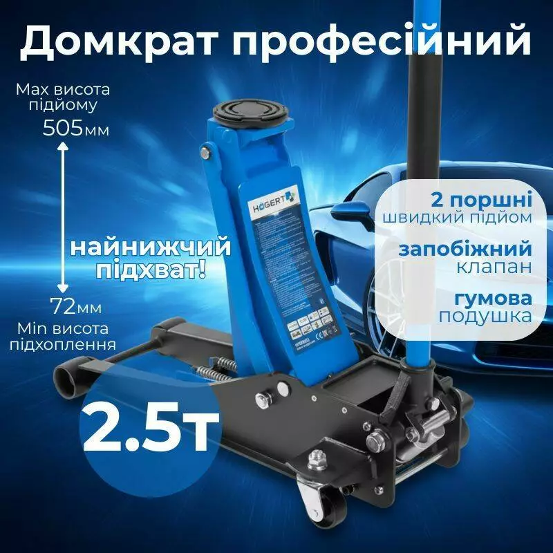 <h2>Домкрат гидравлический подкатной 2.5т Hogert 72-505мм