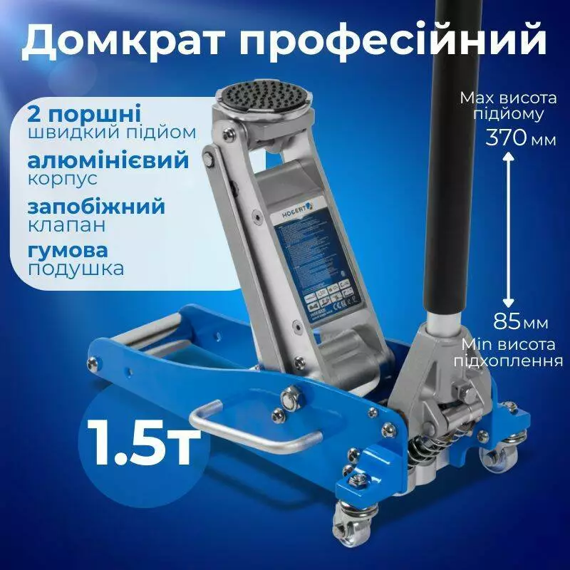 <h2>Домкрат гидравлический подкатной 1.5т Hogert 85–370 мм