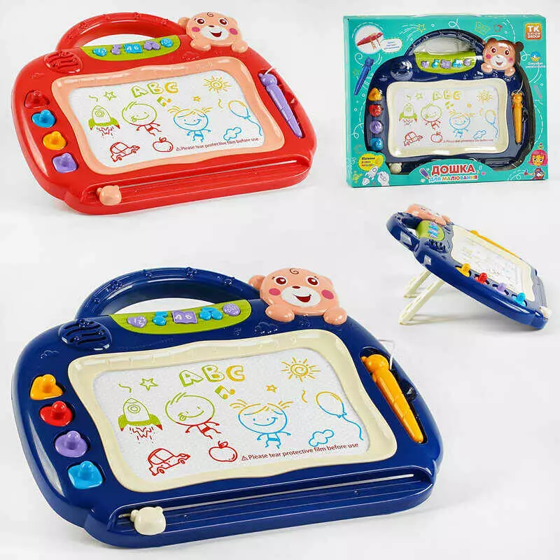 Дошка для малювання музична 71899 (24) "TK Group", ОЗВУЧУВАННЯ УКРАЇНСЬКОЮ МОВОЮ, 2 кольори, абетка, пісні, цифри, фігури, печатки, кольорова поверхня