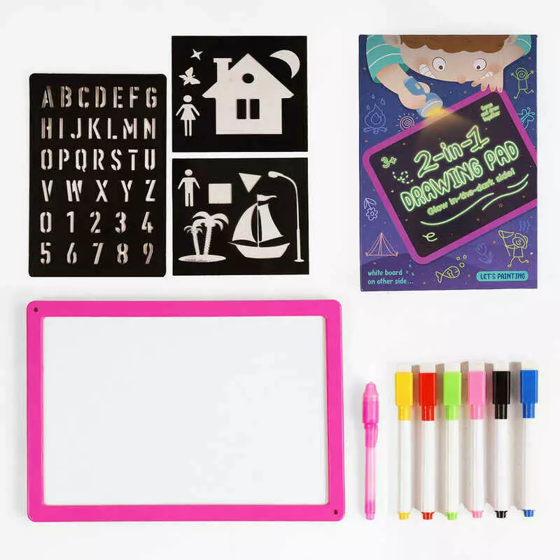 Дошка для малювання WQ 700 (30) "Малюй світлом", 2в1, трафарети, маркери “пиши-стирай”, в коробці