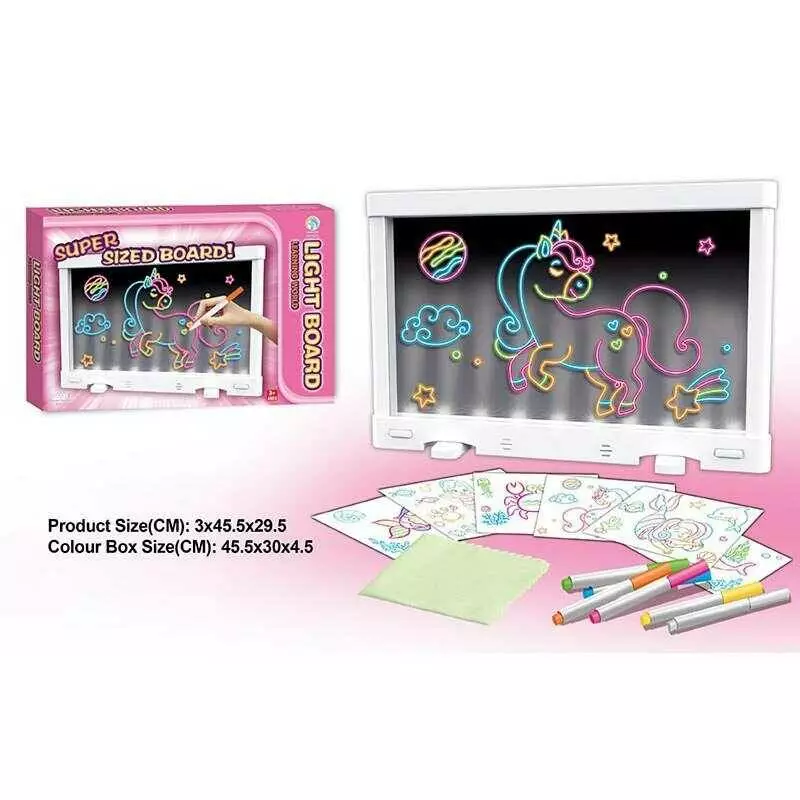 Дошка для малювання YM 18 (36/2) підсвічування, 6 маркерів, 6 двосторонніх трафаретів, в коробці