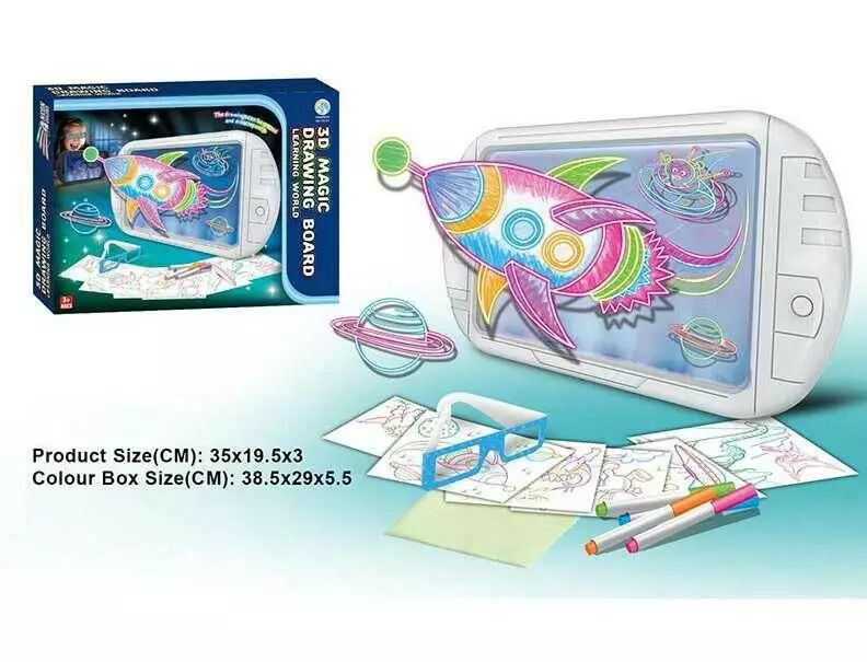 Дошка для малювання YM 21 (48/2) підсвічування, 6 двосторонніх трафаретів, 4 маркери, 3D окуляри, в коробці