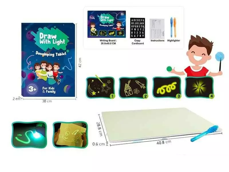 Дошка для малювання YM 811 (72/2) "Малюй світлом", 28,8х0,6х40,8 см, ручка на батарейці, люмінесцентна дошка, в коробцs