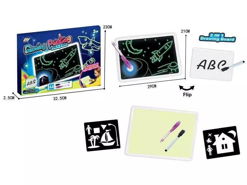 Дошка для малювання YM 993 (72/2) "Малюй світлом", двостороння дошка, маркер “пиши-витирай”, ручка-ліхтарик, в коробці