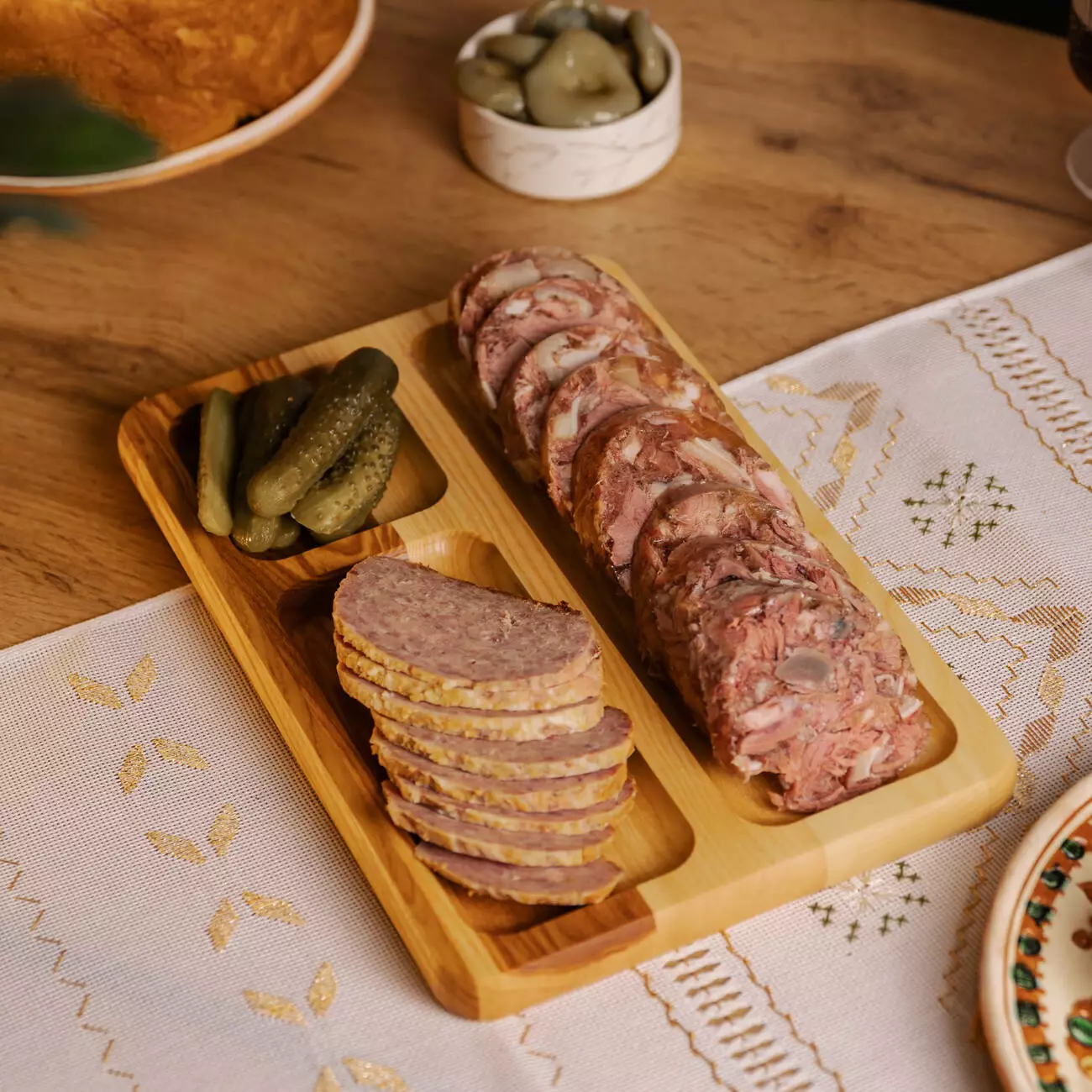 Дерев'яна прямокутна дошка для подачі на три секції стане
