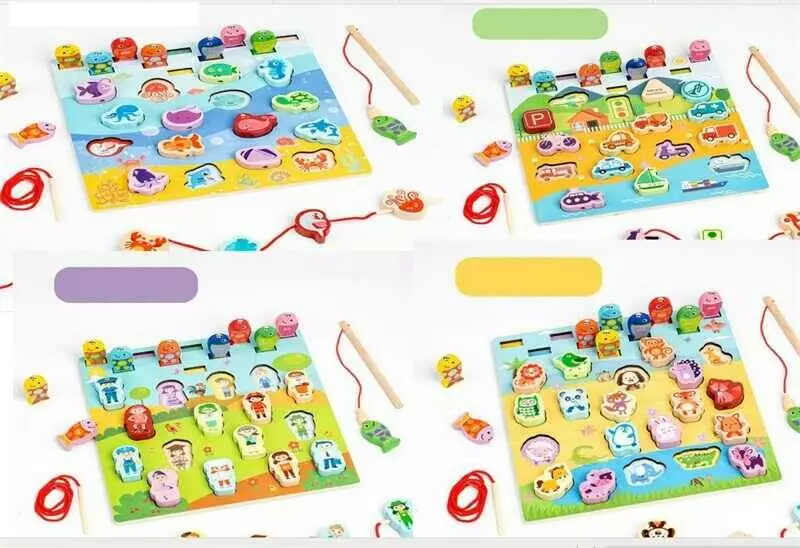 Логічна дерев’яна дошка C 68310 (60) пазли вкладиші, магнітна риболовля, шнурівка, в коробці