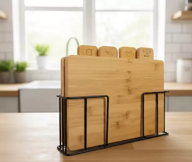 Набір із 4 бамбукових дощечок з підставкою Ruhhy — натуральність,