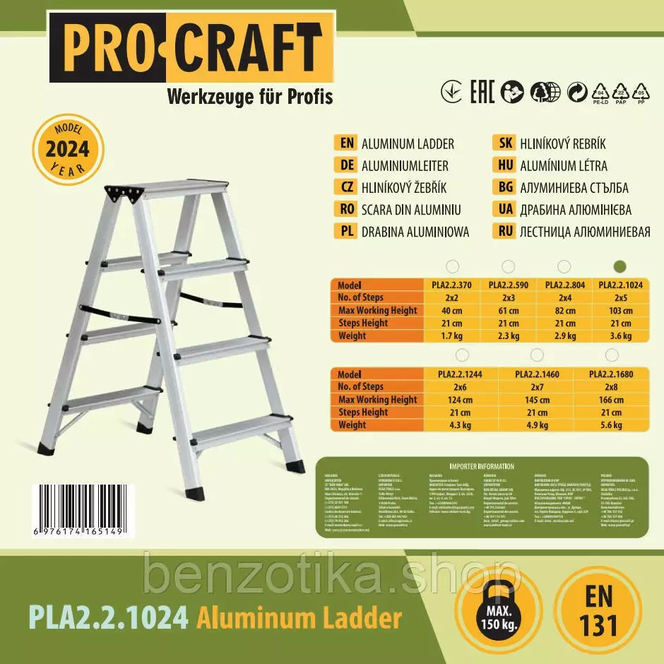 драбина-стрем’янка алюмінієва Procraft PLA2.2.1024? Procraft