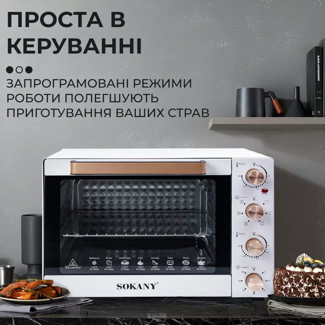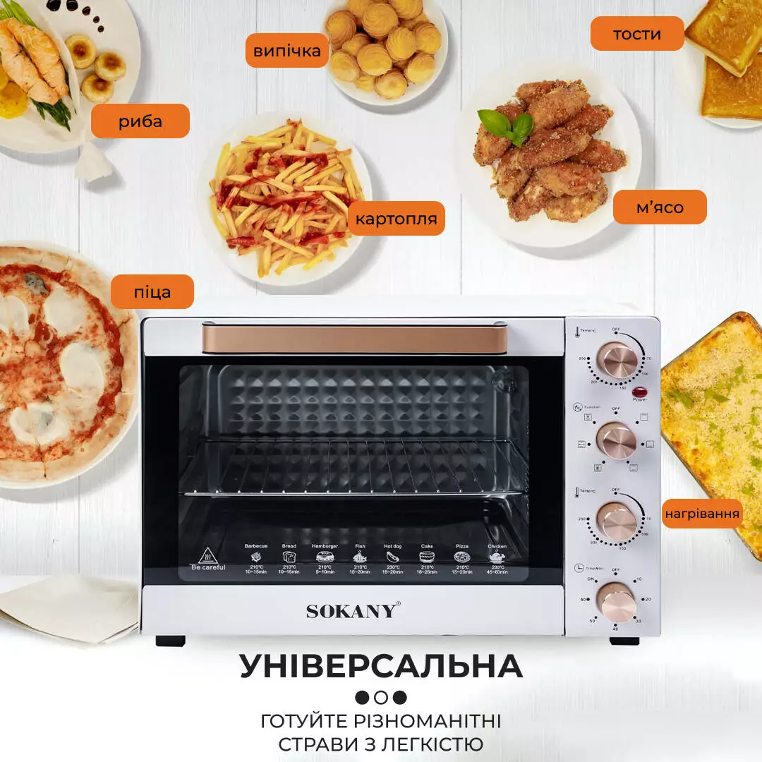 Духовка електрична настільна SOKANY SK-10010 об'ємом 60 літрів з таймером