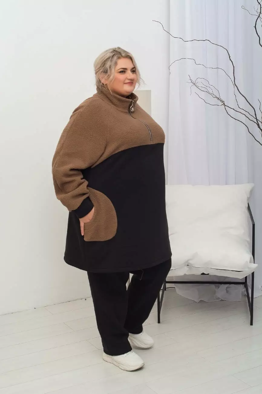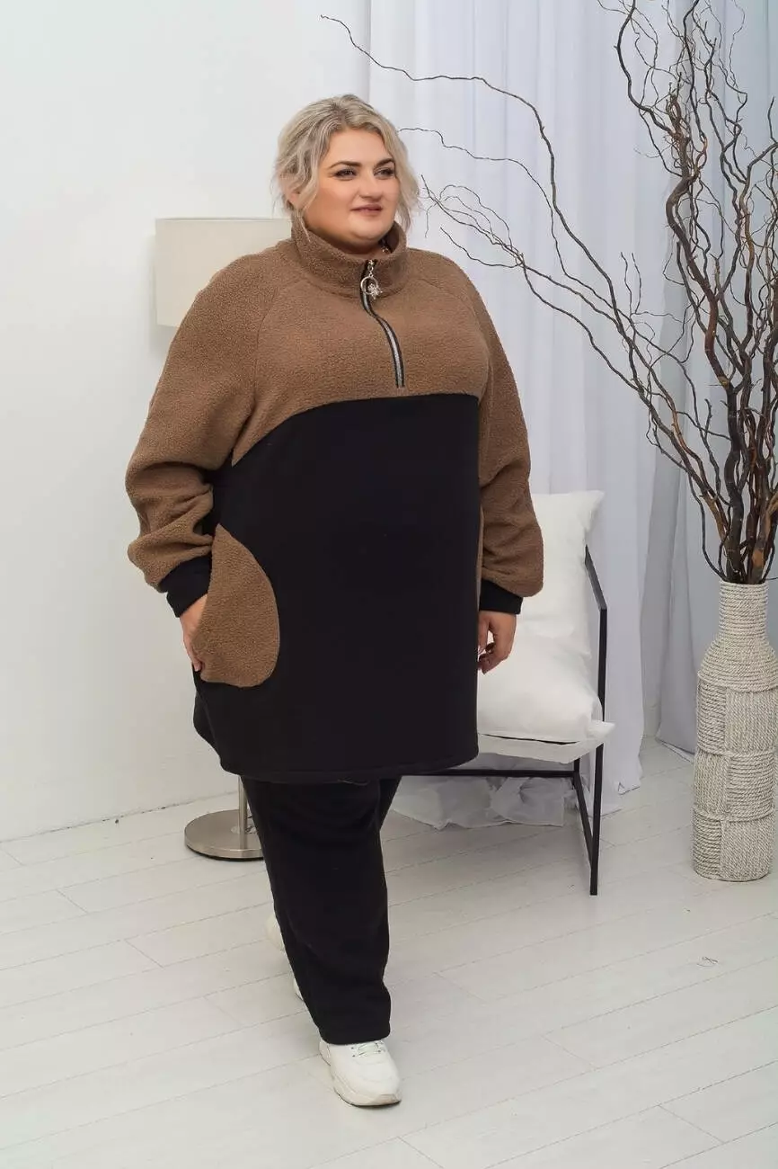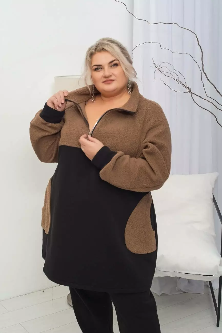 Дуже тепла подовжена туніка "Плюшка Худі" 62-64