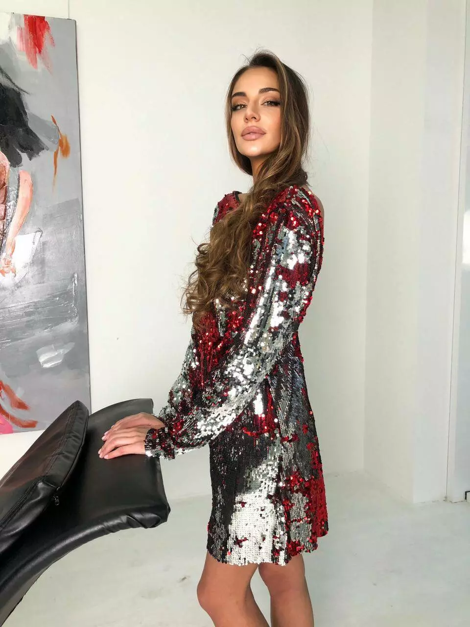 Пряма, коротка сукня «ДЗЕРКАЛО» з рукавами, яка стилізована акцентною деталлю - глибоким V-подібним вирізом, створюючи вечірній образ Двостороння сукня «ДЗЕРКАЛО» зроблена на підкладці для зручного носіння та носити можна обома сторонами на обличчя