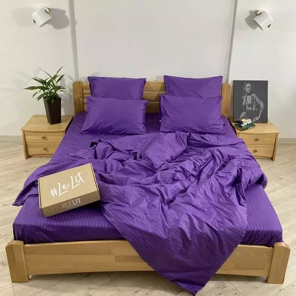 Двуспальное постельное белье LeLIT 0822 темно-фиолетовое страйп