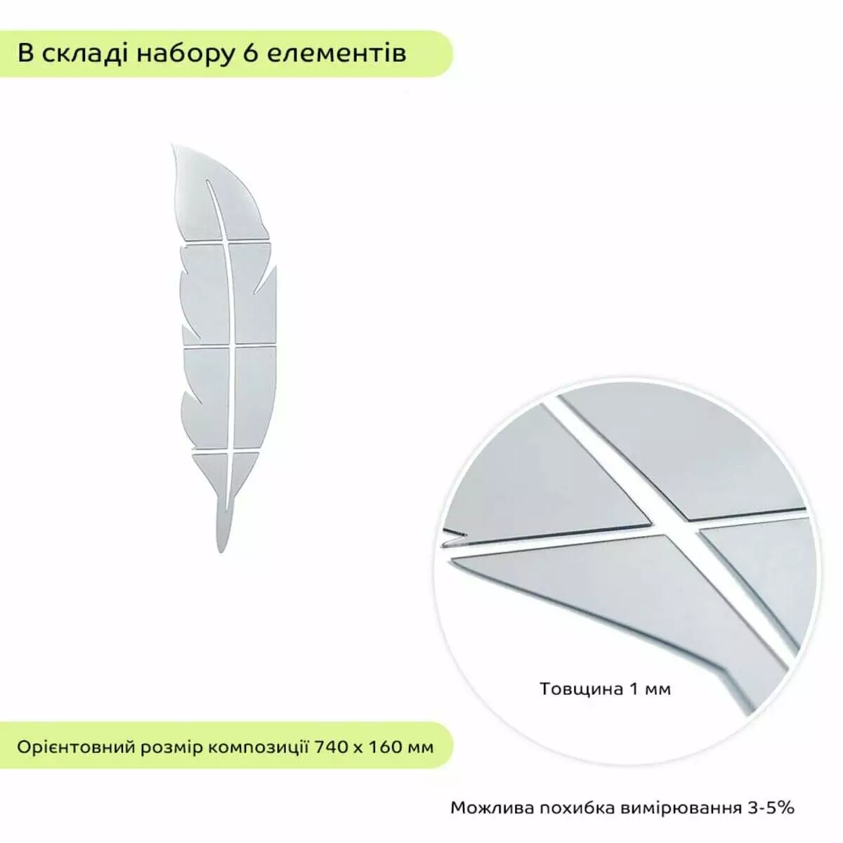 Розміри:6 шт, товщина 1мм, композиція (740х160мм -