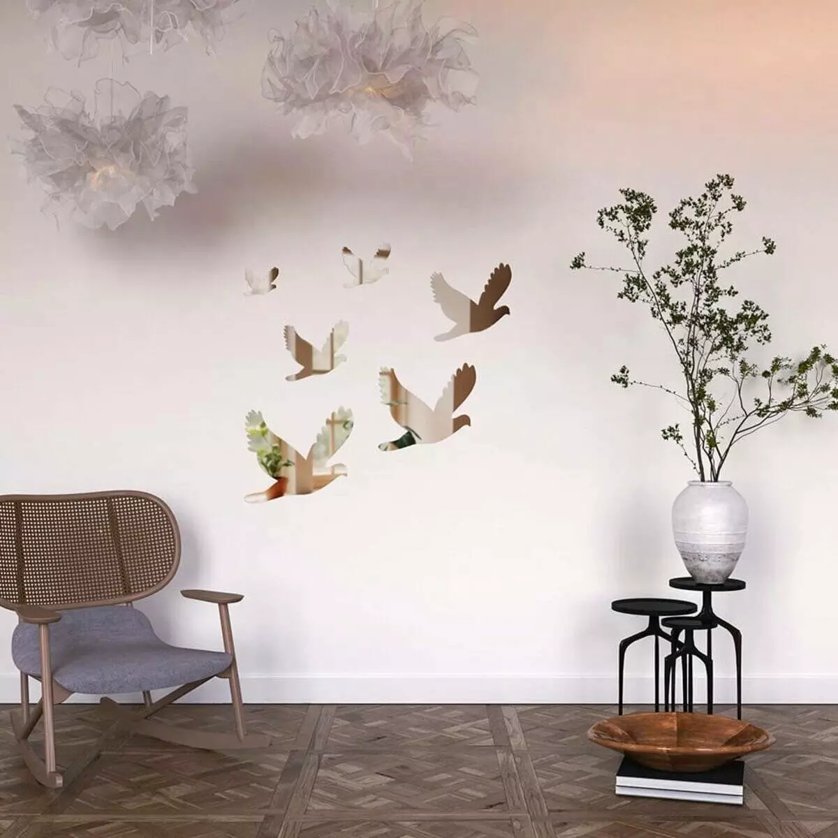Дзеркальний декор акриловий самоклеючий Птахи срібло, 6шт (D) SW-00002520