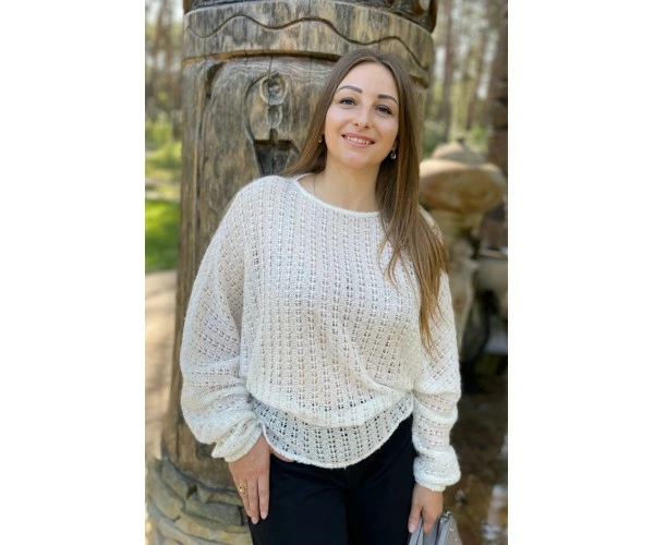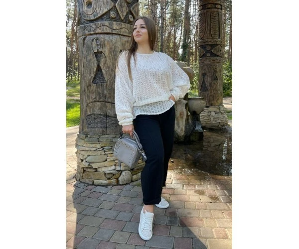 Джемпер имеет оригинальный фасон – летучая мышь,