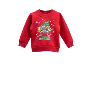 Джемпер имеет в рукавах и внизу трикотажный манжет. Нанесен новогодний принт.