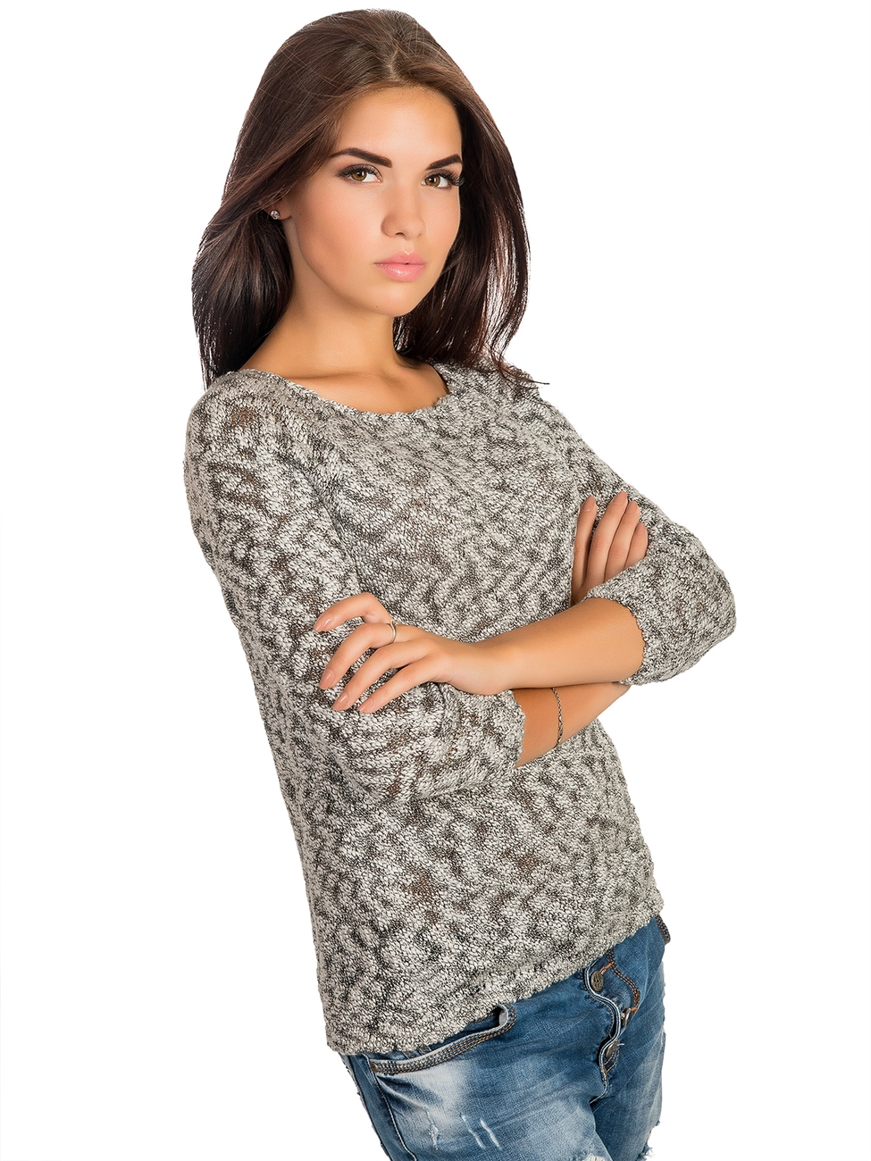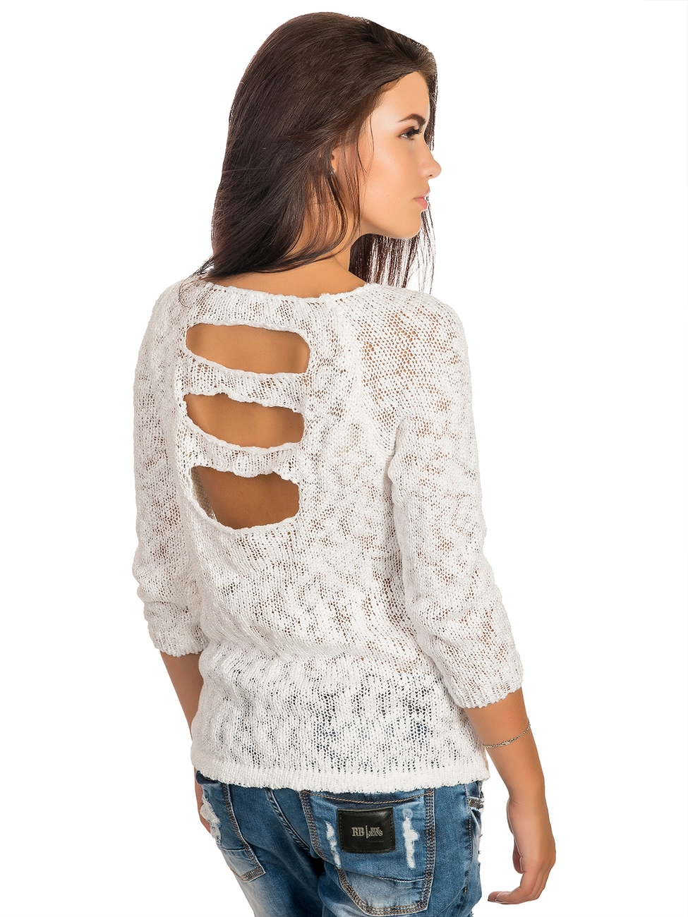 Легкий вязанный джемпер из мягкой, приятной на ощупь, высококачественной пряжи. Джемпер прямого силуэта, спинка украшена разрезами. Представленный наряд легко станет незаменимым в Вашем гардеробе в прохладные вечера.