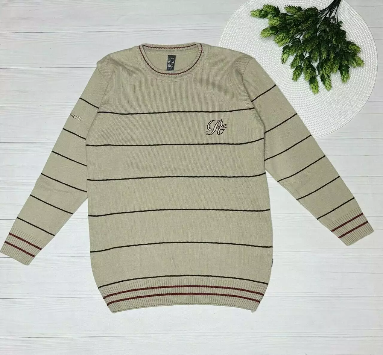 Джемпер в смужку хлоп. Бежевий 70% акрил/30% шерсть 1115-0025 REY POLO