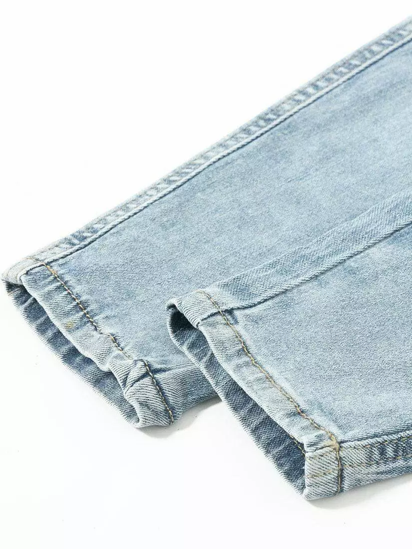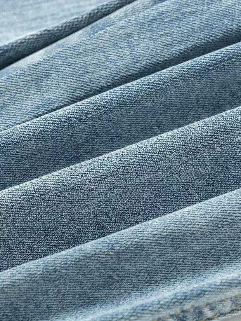 блакитного кольору. Брючини прямі, вільного крою. Ззаду дві