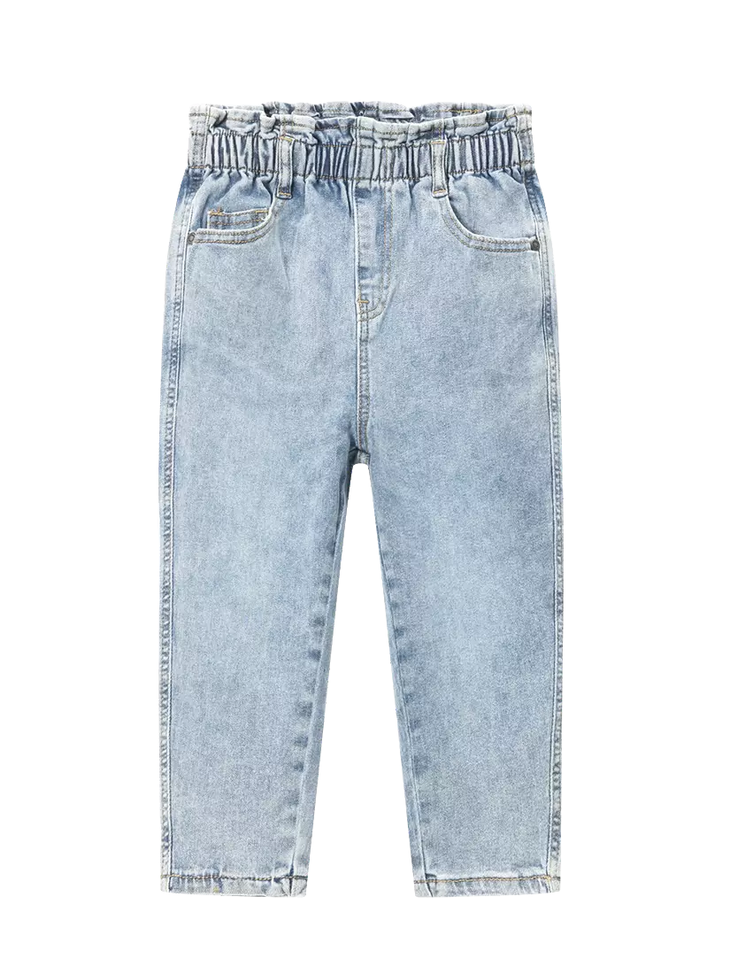 Зустрічайте нову колекцію - колаборація брендів YUMSTER і NEWNESS! Доповніть гардероб вашої маленької модниці стильними джинсами з високою талією - вона буде вдячна вам за це кожен день! Деталі моделі: джинси блакитного кольору. Брючини прямі, вільного крою. Ззаду дві накладні кишені, спереду дві кишені з відрізним бочком. Висока талія, на широкій резинці. Є шльовки під ремінь. Розмірний ряд: на зріст від 98 см до 140 см