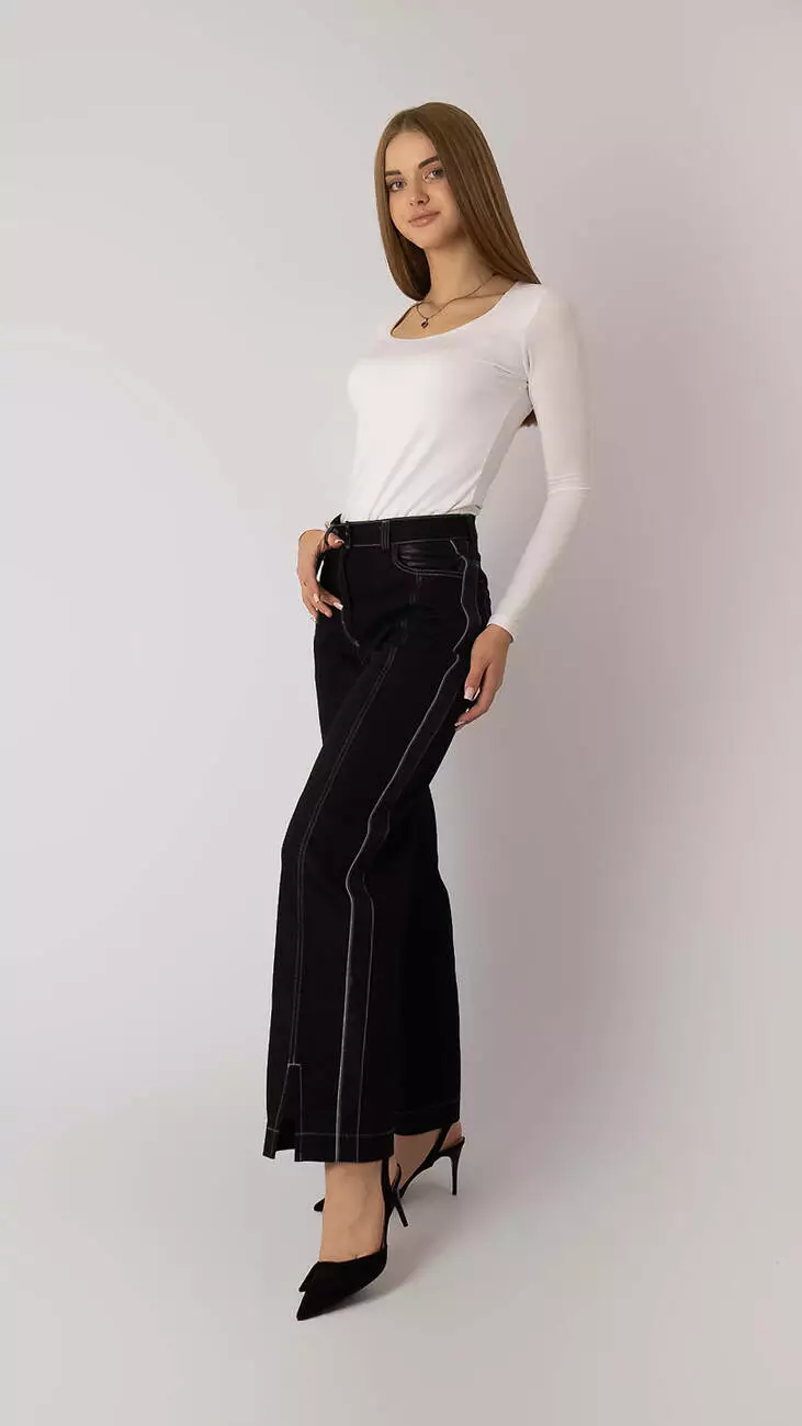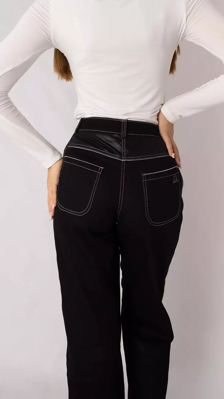 Джинси оксамитово-чорні прямі з лампасами