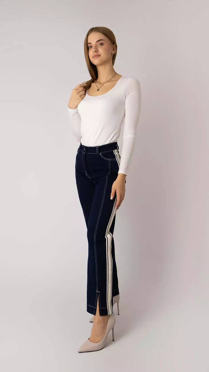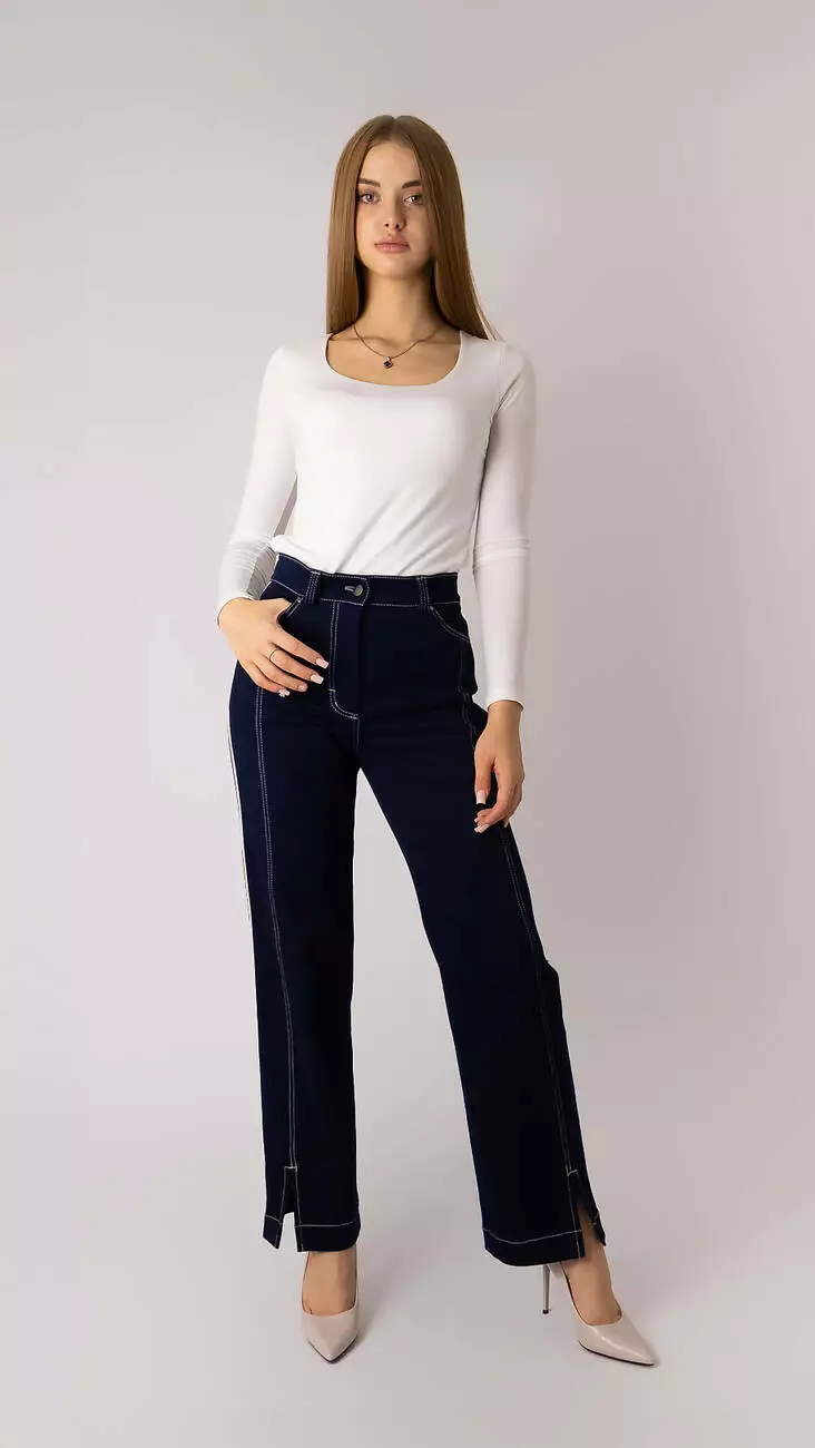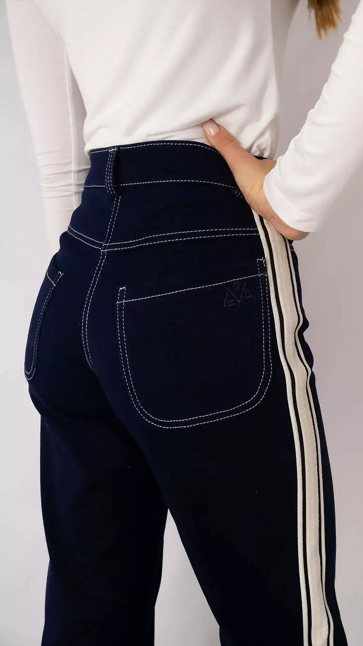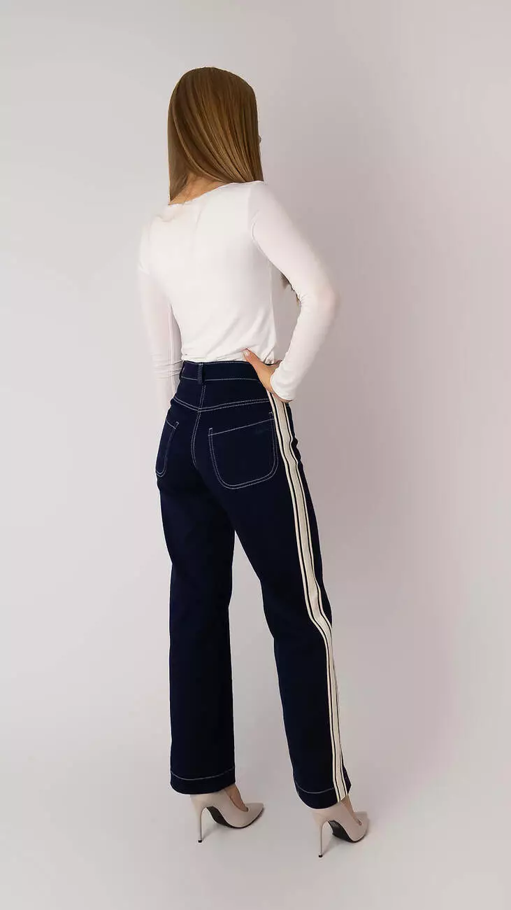 Джинси темно-сині прямі з лампасами