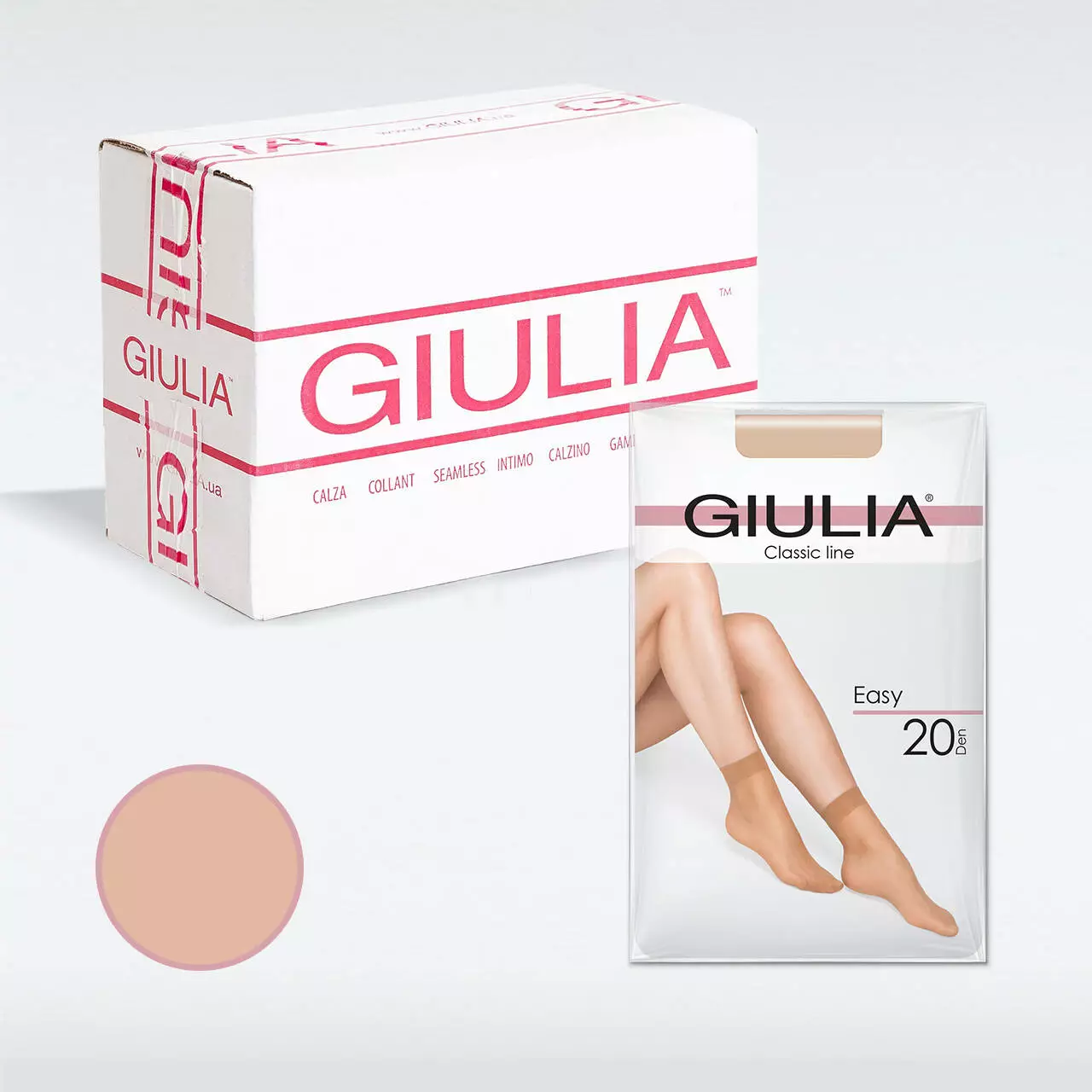 Прозорі і тонкі шкарпетки для жінок Giulia EASY 20 "Top Comfort" із середньою висотою - ідеальний вибір для легкості і комфорту. Вони виготовлені з шовковистого і матового поліаміду із щільністю 20 den, який ніжно обгортає ногу і залишається дуже міцним. Ці делікатні шкарпетки майже невидимі на нозі, забезпечуючи приємне відчуття. Для додаткової практичності вони оснащені посиленим миском і широкою, комфортною резинкою, яка ніжно облягає ногу, не залишаючи слідів на шкірі.