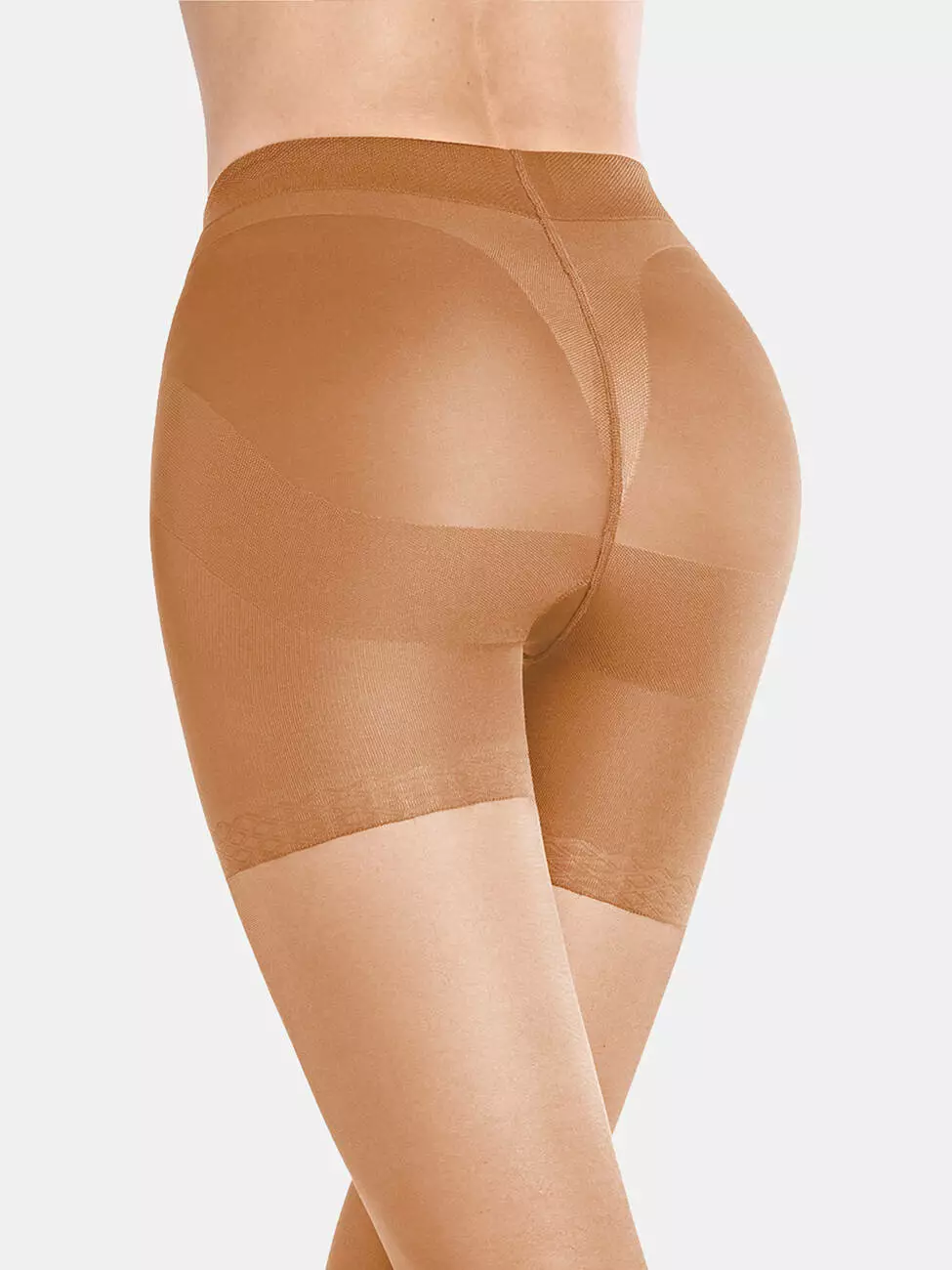 Жіночі колготки 40 DEN з високими моделюючими шортиками створюють ефект підтягнутих сідниць і формують силует. Щільні еластичні зони коригують стегна, живіт і боки, розгладжуючи нерівності. Напівматова прозора текстура делікатно облягає ноги. Пласкі шви та комфортний пояс забезпечують зручність протягом дня.