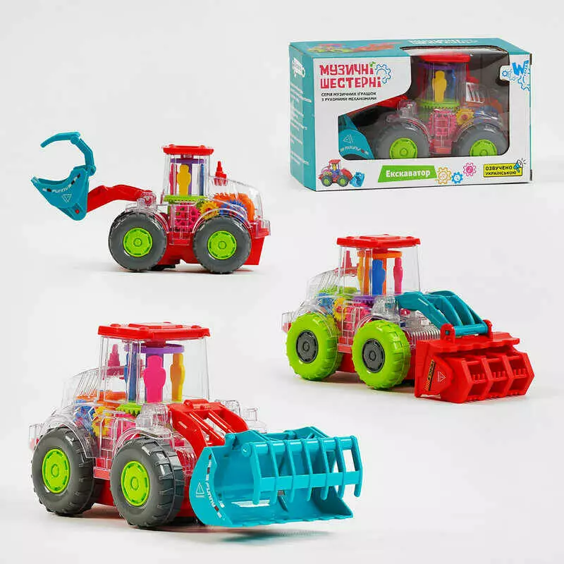 Екскаватор на батарейках 17095 (48) "WToys", ОЗВУЧУВАННЯ УКРАЇНСЬКОЮ МОВОЮ, 2 види, шестерні, пісня, підсвічування, автоматичний рух, в коробці