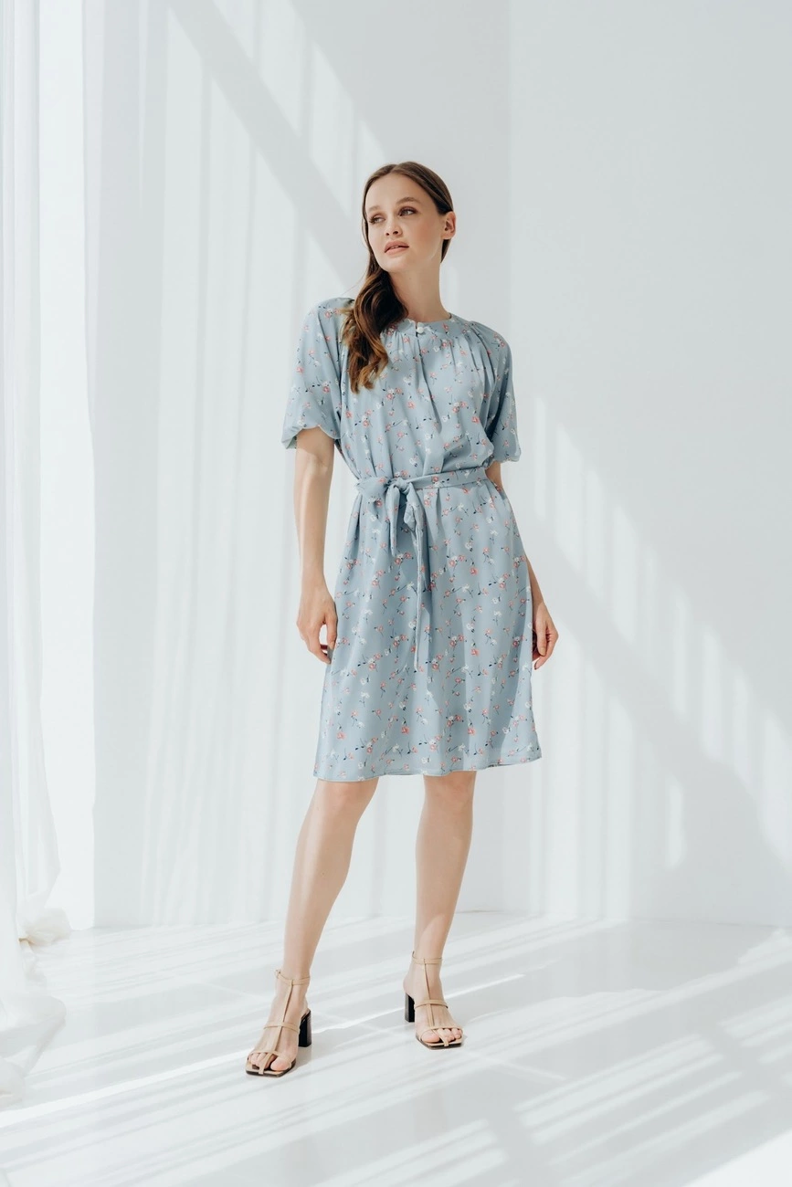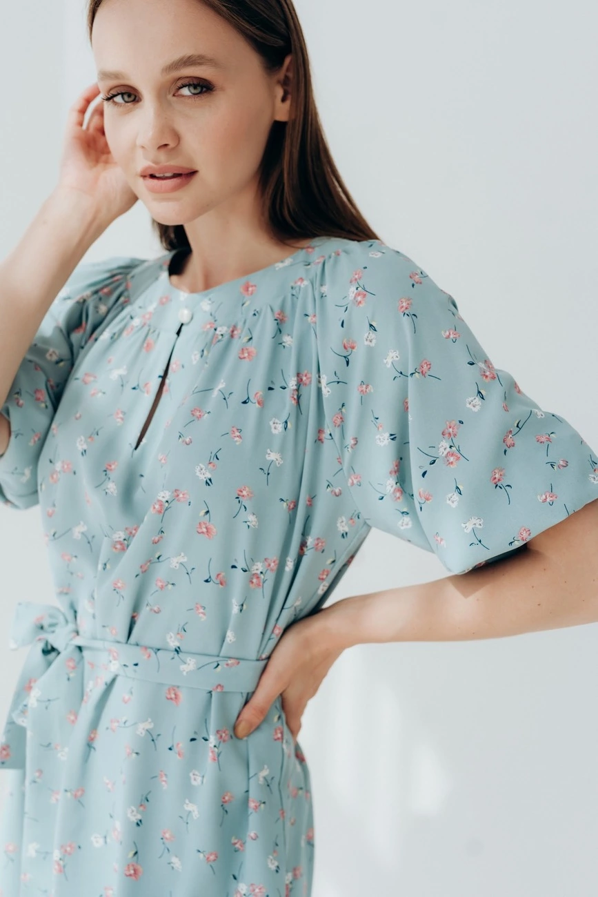 Елегантна сукня з поясом та жіночним фасоном. Ніжна сукня з