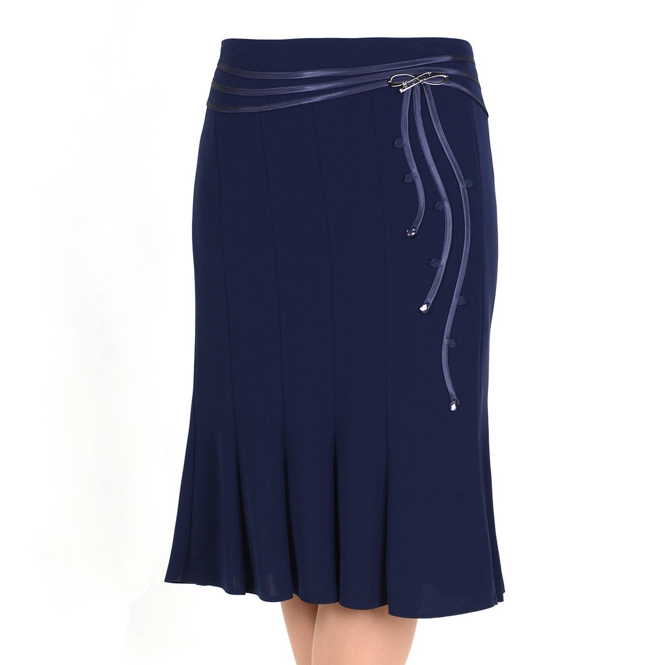 Элегантная юбка-годэ с декоративной отделкой по кокетке, украшенная камнями. Эта модель поможет дополнить как праздничный, так и повседневный образ. |