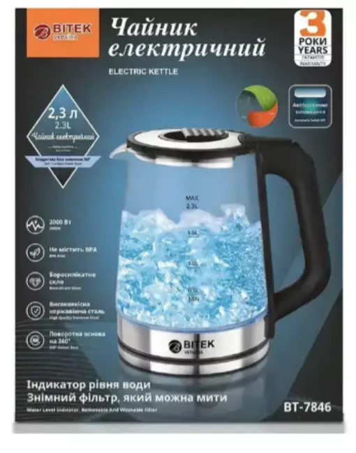 Электрочайник BITEK BT-7846, 2,3л 2кВт