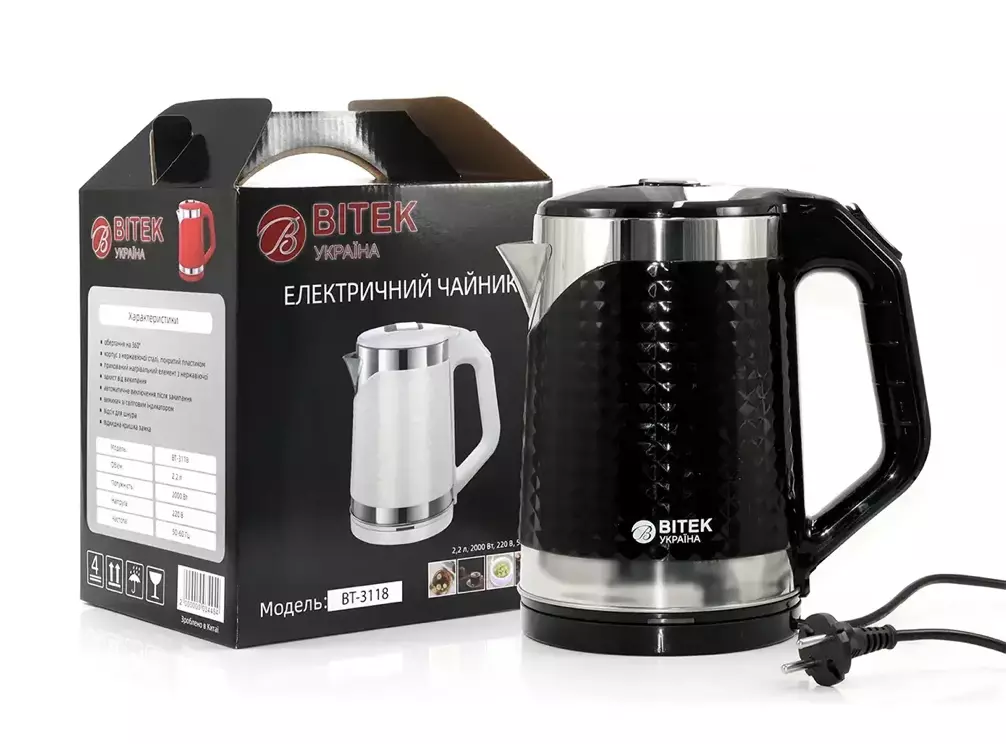 Електрочайник нерж. 2.2 л 2000 Вт BITEK BT-3118/ 7527 (16 шт./яский)