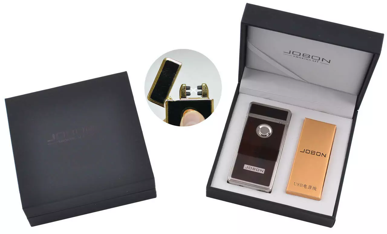 Электроимпульсная зажигалка в подарочной упаковке Jobon (Две перекрещенных молнии, USB) XT-4885-2