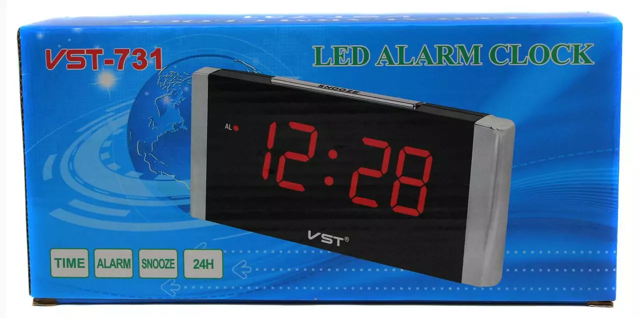 Настольные электронные часы VST-731 имеют классическую прямоугольную форму, дисплей с яркой светодиодной подсветкой, а также, обладают встроенным будильником с функцией "SNOOZE" "сони". Когда звучит будильник Вы нажимаете кнопку "SNOOZE" , будильник входит в режим сна .Сигнал будильника прозвучит снова через 8 минут.Голосовое оповещение времени на русском языке.