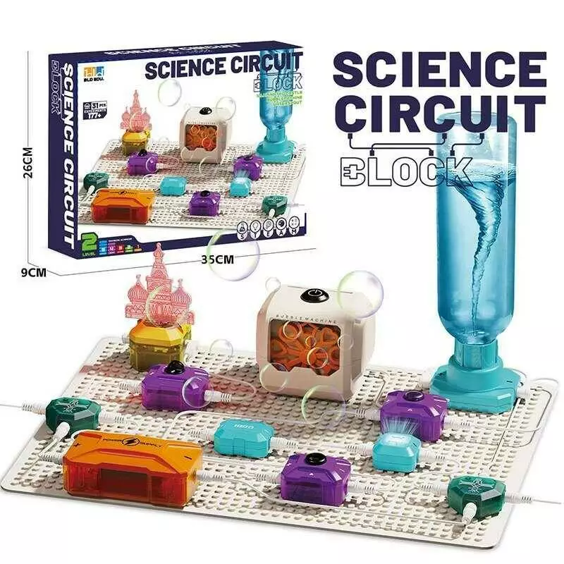Головна > Каталог > Іграшки > Конструктори > Електронний конструктор D 2007 (36/2) 31 елементи, підсвічування, установка з мильними бульбашками, вентилятор, в коробці оптом
